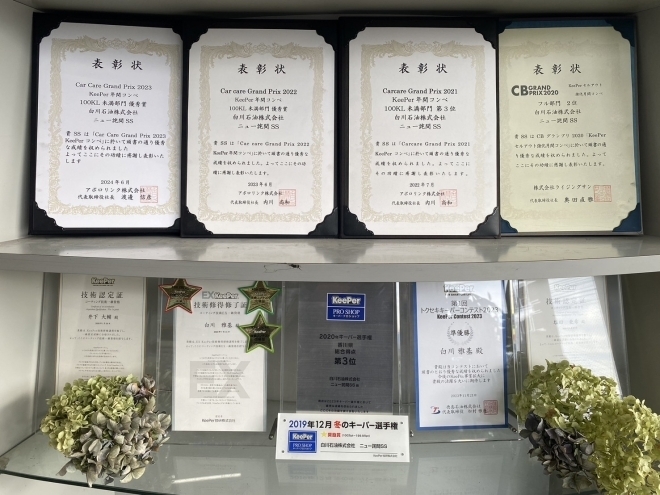 加えて、キーパーコーティングの施工台数を全国の加盟店で競い合う大会「キーパー選手権」で2020年に香川県3位を受賞!アポロステーション、全国の100KL未満部門でも、2023年度が全国6位、2022年度が全国4位、2021年度が全国3位と3年連続入賞しています。