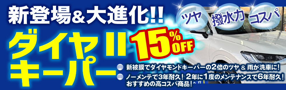 ※人気でおすすめのコーティングメニューは、ダイヤモンドキーパー、エコダイヤキーパーです。各コーティングメニューの特徴やサイズ毎の料金はこちら。